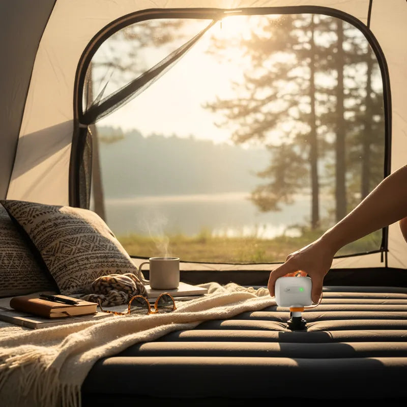 With a powerful 210L/min airflow, this **fast-inflating electric pump** sets up your air mattress or sleeping pad in under a minute. Reclaim your adventure time.