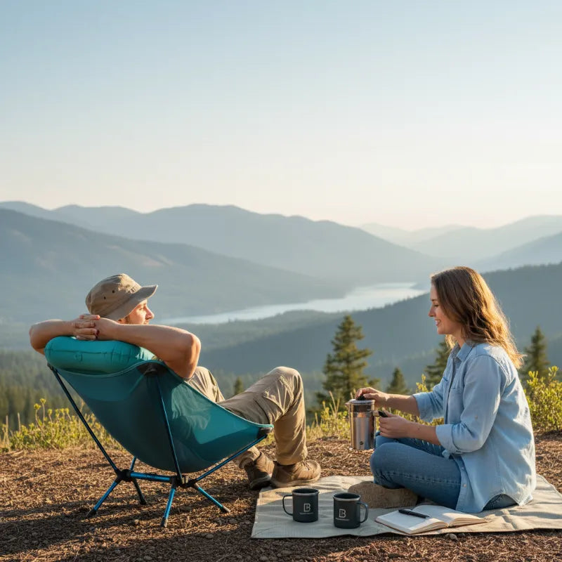 You reach the summit. From your pocket comes the AeroComfort, inflating in seconds against the stunning view. You lean back, enjoying the moment without the bulk.